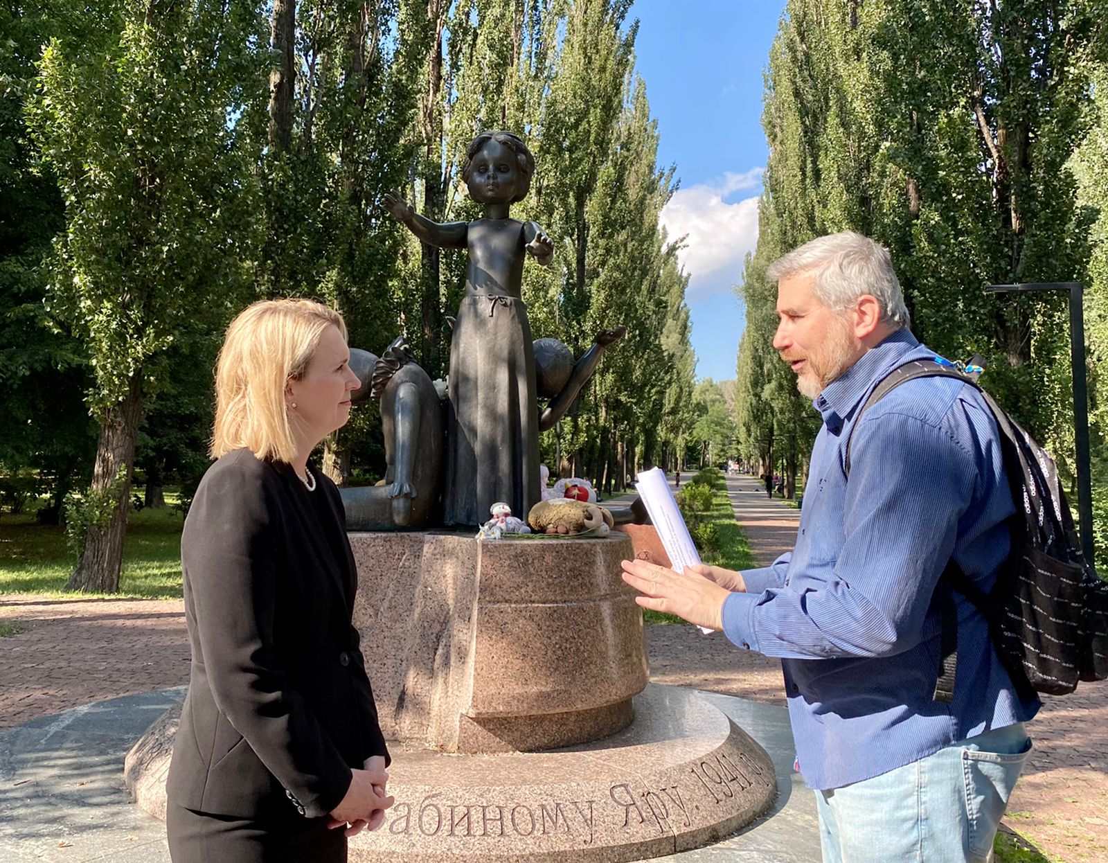 Посол США в Україні пані Бріджит Брінк під час зустрічі-екскурсії зазначила, що її країна з самого початку російського вторгнення і дотепер допомагає українцям захиститися від звірств росіян, які порівняла зі злочинами нацистів у Бабиному Яру.